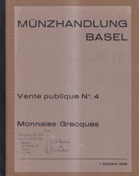 Basel: Vente aux enchères le 1er octobre 1935. Gr.-8°. 1 Frontispiz. 1279 Nummern auf 75 S. Davon Nr. 1177-1191 Griechische Kunstobjekte. Nr. 1192-1279 Numismatische Literatur. Ca 1895 Münzabb. 15 Kunstobjekte auf Lichtdrucktaf. Schätzpreisliste lose anbei. Broschiert. Neuer Einband. (auf Einband vorne unten 6 Zeilen handschriftl. Notizen mit Tinte. Auf S. 59 und Taf. 34 einige kleine Anstreich. mit rotem Kugelschreiber; Schnitt unten mit „Basel 4“ beschriftet; altersgemäss gebräunt)